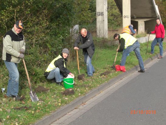 Mindestens 2.500 Osterglockenzwiebeln wurden in nur zweieinhalb Stunden von 18 großen und kleinen Gärtnern entlang der