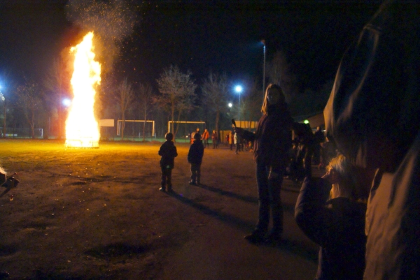 Kontaktbeamten. Bei der Ankunft auf dem Sportplatz brannte bereits ein riesiges Lagerfeuer, das durch Büddel Helms und Walter