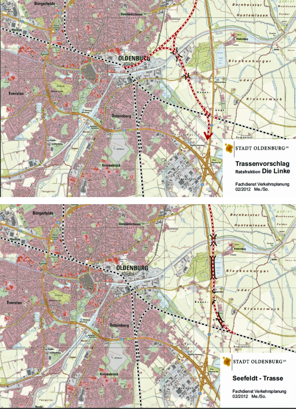 Stadt Oldenburg hat dagegen Klage erhoben. Zwischenzeitlich wurde seitens der Bahn für das nördliche Stadtgebiet